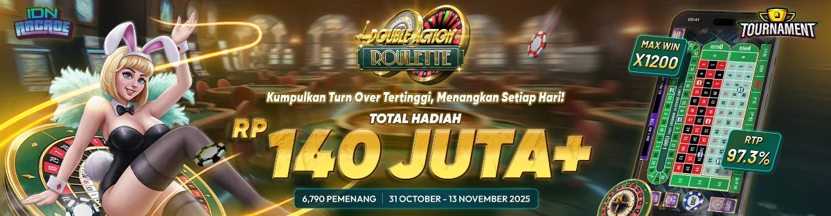 Double Action Roulette Tournament akan memberikan hadiah dengan total sebesar Rp143,500,000. Turnamen ini akan berlangsung setiap hari pada jam 00:00 - 23:59 WIB mulai dari tanggal 31 Oktober sampai dengan 13 November 2025 dan akan membagikan hadiah per harinya sebesar Rp10,250,000 kepada pemain-pemain yang memiliki skor tertinggi di papan peringkat.